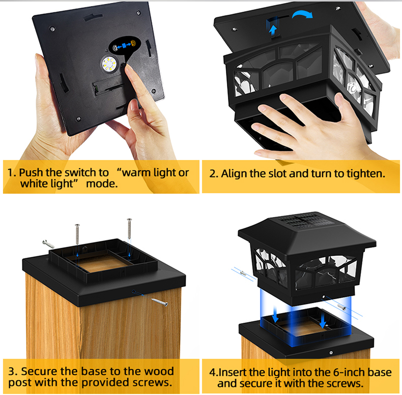 4.Einföld uppsetning, Sólarveggljósið úti er hægt að festa á vegginn með meðfylgjandi skrúfum á nokkrum sekúndum, engin kapla eða vír nauðsynleg.